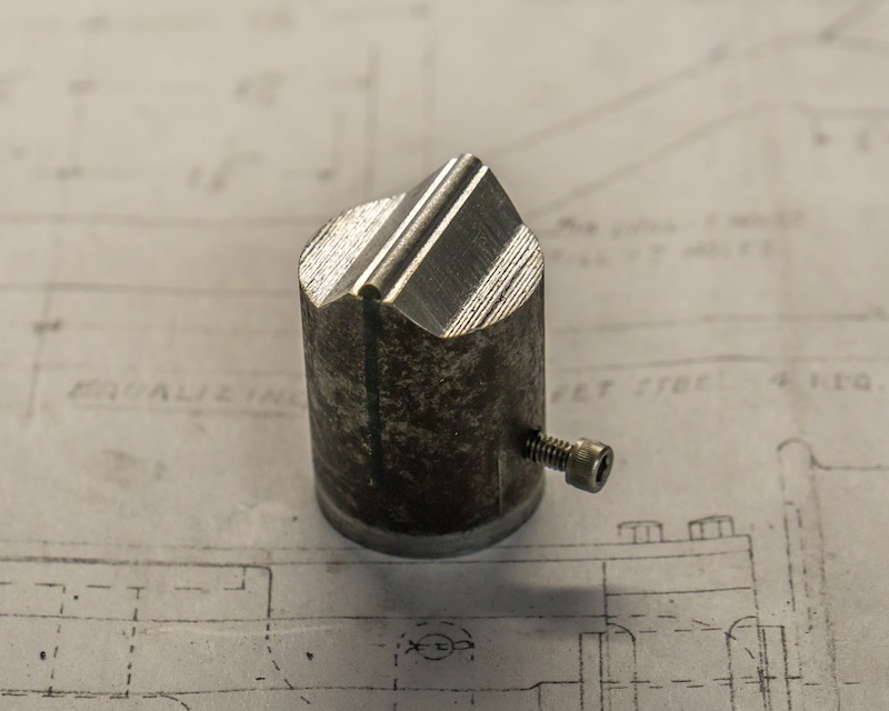 This is the tool I made to press down on the bar stock. I just happened to have a funky concave cutter, I picked up at an auction some time ago. This was the first time I’ve used it.