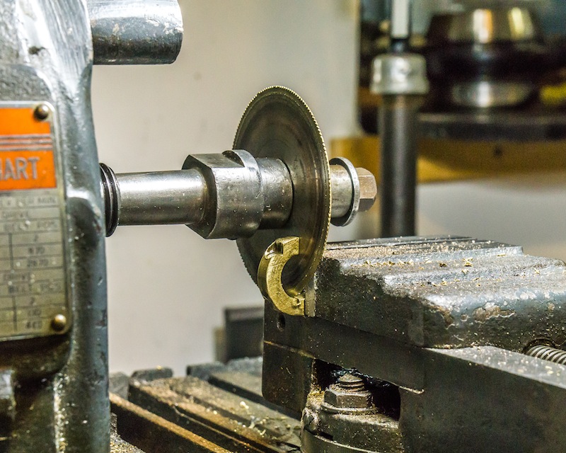 The horizontal mill set up for milling and drilling set screw holes on the movable left hand drivers, for changing gauge.