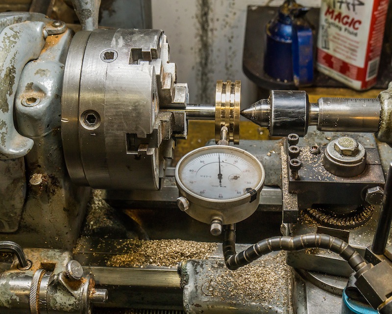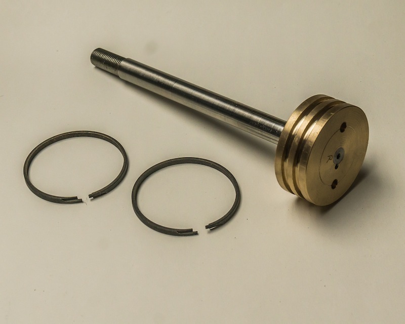 The piston rods are half inch 300 series stainless steel. It is very important to make the pistons concentric to the piston rod, so I assembled the piston blank to the rod and then turned the final dimensions as a unit. My six jaw chuck can be adjusted for runout, so I took extra time to indicate it in as close to zero as I could make it.