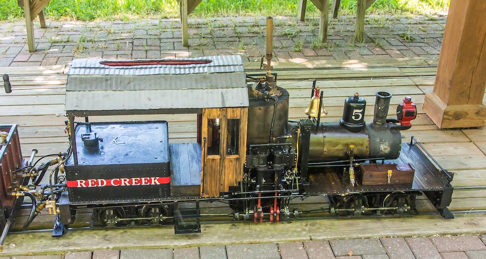 I started building this engine in the late 1990’s – I’m guessing around 1997. The plans for the engine are a scaled up version of the Mich-Cal No. 2 by W. M. Harris published by Live Steam magazine (a division of Village Press, Inc. Traverse City, Michigan). The plans are for a 1/8 scale narrow gauge Shay for 4-3/4 inch track. I multiplied all the dimensions by 1.5 to run on 7-1/4 inch track (I made the axles longer with a 1/4 inch bushing on the left side of the engine, so it could easily be re-gauged to 7-1/2 inch track). I also back-dated the details on my engine to represent a Shay of the late 19th century.